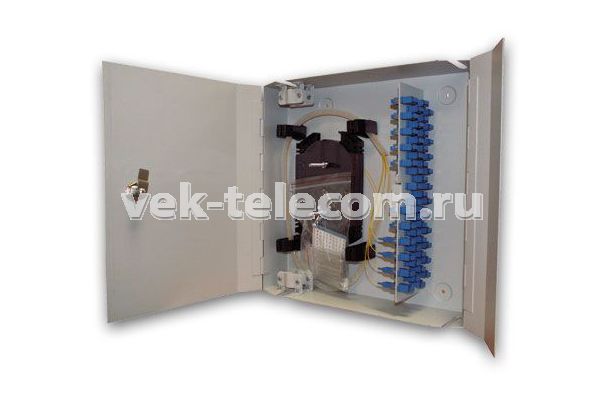 Кросс настенный увеличенной ёмкости W32-SC/MM-32-32-2 с дверками с замком, используется, как с лёгкими, так и с бронированными волоконно-оптическими кабелями. Дверцы кросса с замком обеспечивают удобный и защищённый доступ к соединениям.