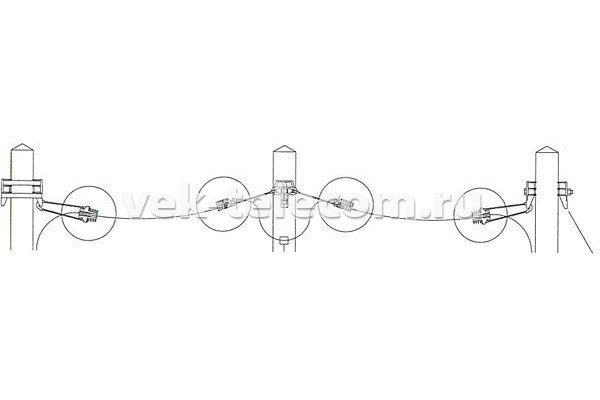 Зажимы AC35, AC68 позволяют просто и быстро закрепить кабель типа «8» за вынесенный трос, выполненный из алюминиевого сплава (ААА) или из диэлектрика (Кевлар, FRP). Зажим удерживается непосредственно на полиэтиленовой оболочке троса.