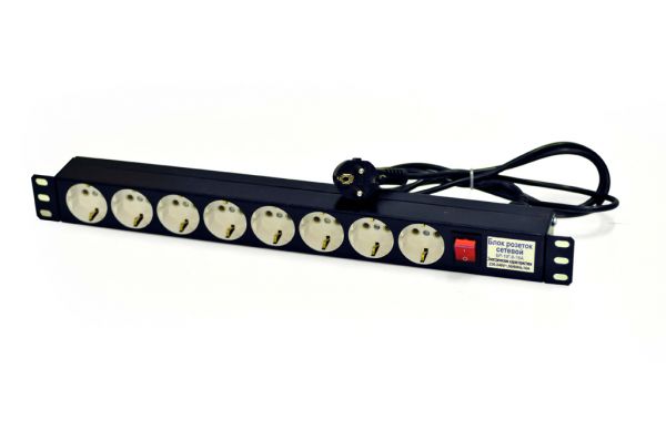 Блок электрических розеток предназначен для распределения электропитания и защиты компьютеров, электронной техники и активного оборудования в телекоммуникационных шкафах и стойках.