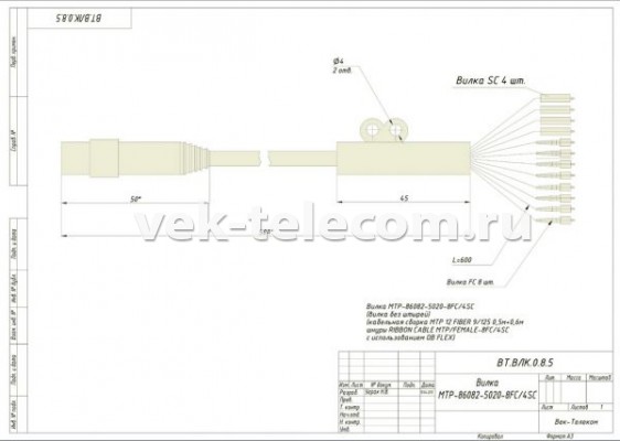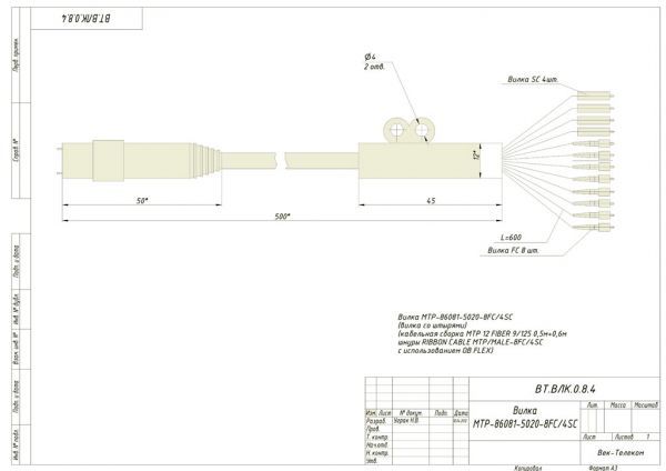 На нашем производстве изготавливаются кабельные сборки с применением ленточного волокна и многоволоконных разъёмов типа MTP.