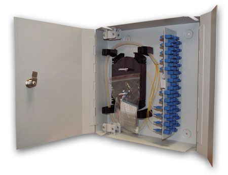 Корпус кросса настенного W48 с дверцами с замком, используется, как с лёгкими, так и с бронированными волоконно-оптическими кабелями. Дверцы кросса с замком обеспечивают удобный и защищённый доступ к соединениям.