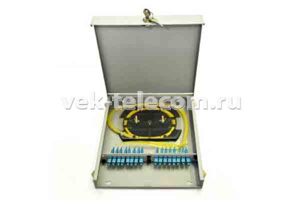 Кросс настенный W16s-SC/MM-16-16-1 с дверкой с замком. Крепление и распределение кабеля внутри кроссов стяжками и липкими площадками позволяет хорошо закрепить как распределительный кабель, так и жёсткий бронированный кабель.