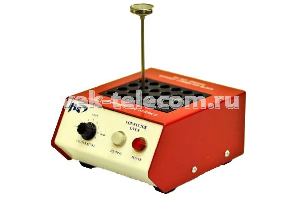 Печь предназначена для нагревания коннекторов при оконцевании. Предоставляет возможность контроля температуры нагрева, снабжена индикатором включения питания. Доступны варианты работающие при напряжении питания 110 и 220 вольт. Поставляется со стандартным блоком на 24 порта. Порты рассчитаны на коннекторы типов FC, ST, SC, SMA и D4. Отдельно поставляются блоки для других типов коннекторов.