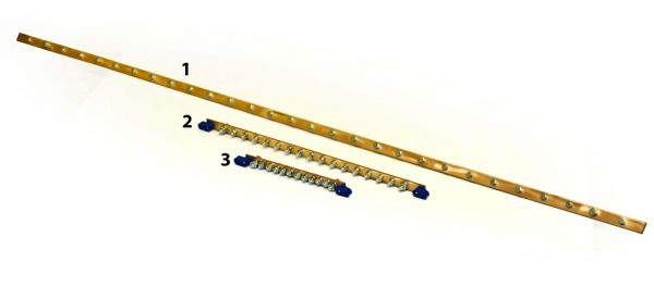Шина заземления медная предназначена для вывода цепочки заземляющих контуров от всех токопроводящих частей шкафа, от установленного в шкафу оборудования и подключения внешнего заземления. Шина имеет сечение 3х20мм. Монтируется на монтажный профиль